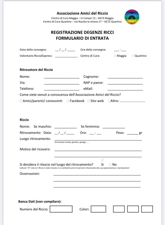 Per motivi di privacy i nome e l’indirizzo sarà comunicato solo se il volontario lo accetta e sarà comunicato dal responsabile del Riccio Express.